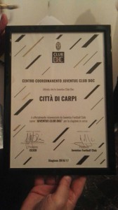 Grande riconoscimento da parte della società Juventus!!! Facciamo parte della famiglia bianconera !! Jcd Città di Carpi noi e voi insieme!!! Fino alla fine ……..Grazie a tutti!